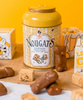 I "Nougats" - torroni assortiti in confezione regalo sono un piccolo scrigno di golosità e ricordi d’infanzia. Questo assortimento unisce tre deliziosi sapori: nougat di Montélimar, nougat al cioccolato e nougat al caffè, tutti racchiusi in una splendida confezione in metallo perfetta da collezionare o riutilizzare. Morbidi, profumati e ricchi di frutta secca, questi torroni portano un assaggio di Provenza direttamente a casa tua. Ideale da regalare a chi ami o da tenere come piccolo tesoro goloso, la confezione diventa un pensiero originale e simpatico, pronto a sorprendere chiunque la riceva.