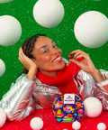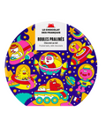 Per queste praline, Valentin Pujadas, alias Dirty Pote, ha creato un’illustrazione unica e vivace: Babbo Natale, alberi, pupazzi di neve e zuccherini viaggiano su navette spaziali colorate, rendendo la confezione un vero oggetto da collezione. Valentin, direttore artistico e illustratore freelance, trae ispirazione da Toy Story e dalla sua infanzia, trasformando giocattoli e peluche in un universo grafico divertente e colorato. Le sue opere sono apparse in libri per ragazzi e progetti di sensibilizzazione come Cliquer, c’est polluer.
